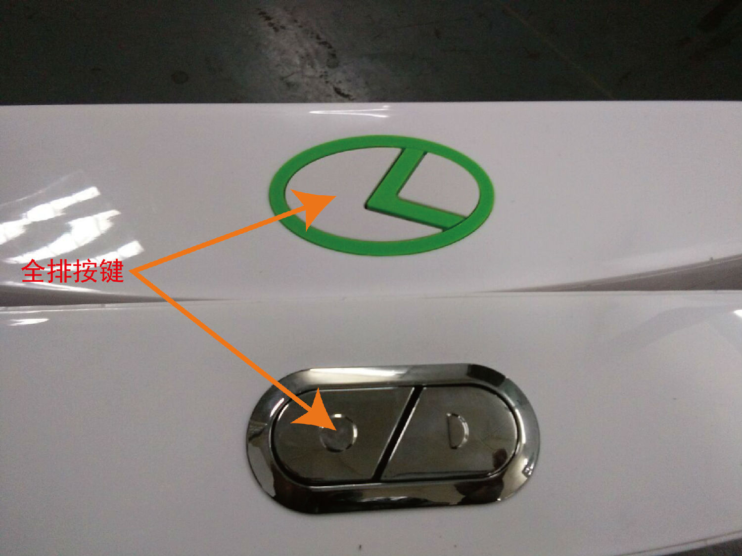 按鍵大的和按鍵上有大標記的,這邊叫全排按鍵,也就是說在使用這個鍵時,蹲便器水箱的水可以排水量較大化,如圖: