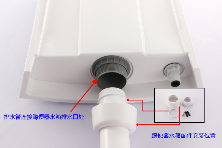 如今市面上的蹲便器水箱品牌和型號越來越多。消費者在購買了其它品牌蹲便器水箱后,在安裝蹲便器水箱的過程中很容易將面里的配件誤裝。比如在安裝螺母蓋(裝飾蓋和連接杯)的時候擰偏或者忘加里面的橡膠密封圈都會漏水。