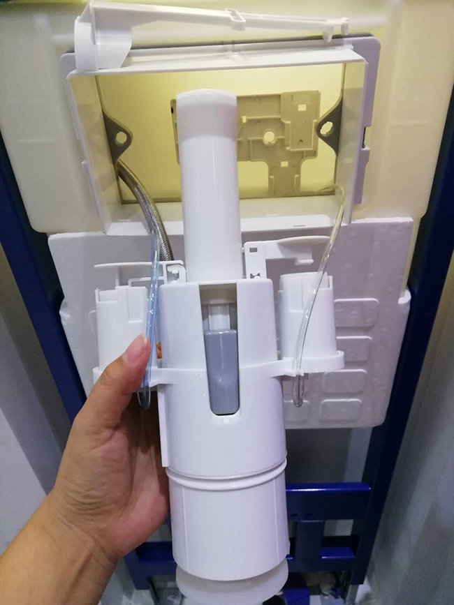事實(shí)當(dāng)然不是如此,如果每一次發(fā)生故障都需要把墻體打爛才能得以解決的話那這款產(chǎn)品的設(shè)計(jì)就太不人性化了,今天我們就詳細(xì)的講解一下隱藏水箱維修怎樣取出里面的配件進(jìn)行更換,以此達(dá)到一個(gè)不破壞墻體的效果。首先映入眼簾的是隱藏水箱的按鍵面板,我們將面板拆下后即可巧妙的運(yùn)用水箱有限內(nèi)部空間進(jìn)行水件的拆除和安裝操作,其實(shí)很簡(jiǎn)單就是把按鍵面板取下來(lái)就可以對(duì)隱藏水箱里的水件進(jìn)行更換或重裝了,我們可以利用水箱內(nèi)部有限的空間把水件從水箱體里面慢慢的取出,因?yàn)樗淅锏目臻g比較的狹小,因此我們需要借助迂回的方式才能夠順利的取出水件,從而進(jìn)行更換,這樣操作既不損傷墻體,同時(shí)也易于更換。另外需要提醒的一點(diǎn)就是,打開(kāi)按鍵面板的時(shí)候我們首先要把連接進(jìn)水閥的閥門關(guān)閉,然后安排排水按鈕,等水箱里的水流完之后再進(jìn)行配件的置換工作,這樣明顯會(huì)更加便捷。